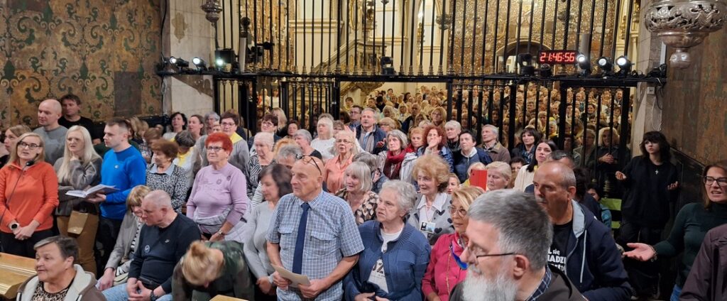 Z 27 na 28 września 2025 r. czciciele św. Ojca Pio, członkowie Grup Modlitwy zgromadzili się na Przeprośnej Górce i na Jasnej Górze na kolejnym modlitewnym czuwaniu, podejmując inicjatywę „Z Matką Bożą i św. Ojcem Pio pomagamy zmarłym w czyśćcu cierpiącym”. W sanktuarium św. Ojca Pio na Przeprośnej Górce koło Częstochowy od godz. 15.00 rozpoczęło się spotkanie modlitwą do Bożego Miłosierdzia, następnie uczestniczyliśmy w nabożeństwie drogi krzyżowej w plenerze i nabożeństwie różańcowym w intencji zmarłych w czyśćcu cierpiących. Centralnym czasem modlitwy była sprawowana Eucharystia o godz. 18.00 przez o. Nikodema, paulina z klasztoru jasnogórskiego. Po Liturgii uczestnicy spotkania udali się w stronę Jasnej Góry by rozpocząć w Kaplicy czuwanie na Jasnej Górze od Apelu Jasnogórskiego. W ramach czuwania uczestnicy wysłuchali bogatej w treść konferencji pt.: „Jak rozumieć czyścieć. Świadectwa o czyśćcu”, którą wygłosiła s. Anna Czajkowska WDC, a następnie wierni modlili się nabożeństwem „Dialogów ze św. Ojcem Pio” przygotowanych przez p. Bogumiłę Biernat z Wrocławia. O północy celebrowana była Msza św. z homilią, której przewodniczył Ks. Bp Artur Ważny, ordynariusz diecezji sosnowieckiej. W Jasnogórskiej Kapicy modlitwa zakończyła się o godz. 4 rano, po wcześniejszym nabożeństwie drogi krzyżowej, odmówieniu trzech części różańca świętego wraz z rozważaniami z pism św. Ojca Pio. W spotkaniu modlitewnym zostało zgłoszonych 39 zorganizowanych grup pielgrzymkowych wraz z kilkunastoma kapłanami. Dziękuję za udział i wspólną modlitwę: br. Andrzejowi Derdziukowi OFMCap z Lublina, br. Franciszkowi Żurowi OFMCap z Bytomia, br. Piotrowi Arkuszewskiemu OFMCap z Wałcza, Wydawnictwu Serafin i Redakcji Głosu Ojca Pio za wzięcie udziału w tym modlitewnym wydarzeniu. Przyszłoroczne czuwanie modlitewne w intencji zmarłych planowane jest na sobotę 26 września 2026 roku.